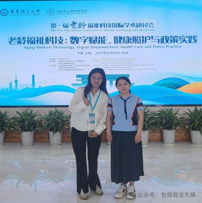 我校政治与法律学院副教授景志铮带领23级社会工作硕士研究生王研方参会。会议期间,师生二人围绕论坛核心议题积极参与交流,深入学习国内外老龄福祉科技领域的最新研究成果与实践经验。在分论坛环节,王研方代表团队作题为《风险治理视角下智慧老龄化社会的治理困境与破局之策》的汇报。