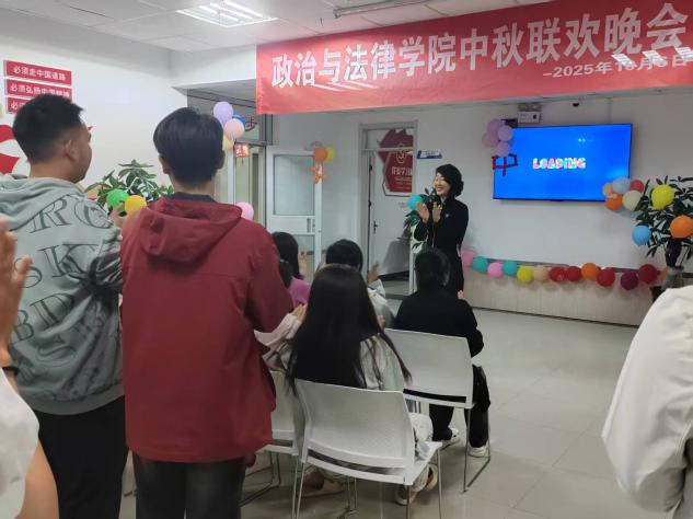 为缓解留校学子的思乡之情,为校园生活留存鲜活的中秋记忆,2025年10月6日19:30,政治与法律学院在宿舍一楼大厅精心举办中秋联欢晚会。学院以香甜月饼、趣味互动与温情陪伴为纽带,与留校学生共庆中秋佳节,政治与法律学院学工办主任袁爱荣老师全程参与,陪伴同学们度过团圆时刻。