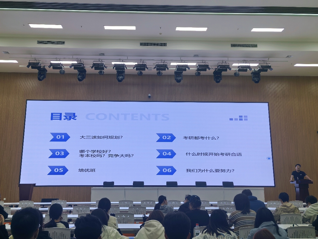 讲座伊始,韩老师针对大三学生考研问题展开了具体的分析。讲座详细介绍考研政策,如不同地区、不同院校的招生政策差异,让考生清晰知晓报考条件。