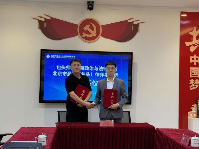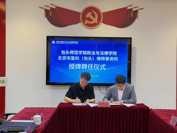 为贯彻落实《关于加强新时代法学教育和法学理论研究的意见》,深化法学实践教学、推动校地协同育人。10 月 21 日,政治与法律学院与北京市盈科(包头)律师事务所(简称盈科包头律所)在律所举行了法学专业实习基地协议签约仪式。