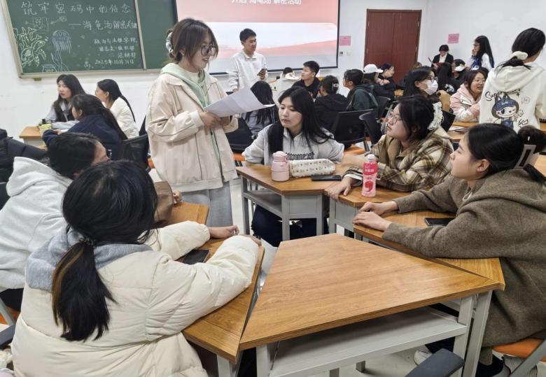 此次活动既丰富了学生们的校园生活,又实现了以思促悟的目标,有效凝聚了学生们的信念力量,取得了良好效果。 这场“海龟汤”解密,不只是一次趣味游戏,更是一堂“沉浸式”的信念课。大家在解谜的过程中,潜移默化地把“筑牢理想信念”的种子埋进了心里。希望这份“以思促悟”的收获,能成为大家践行初心、坚定信仰的生动力量。