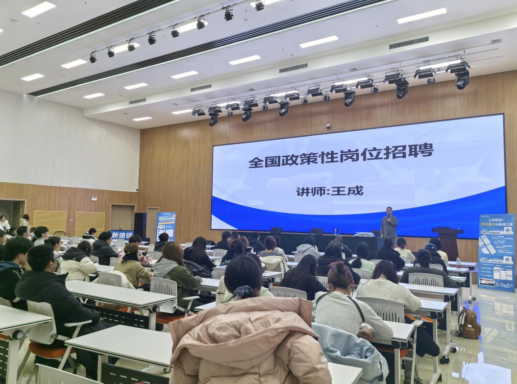 为帮助政法学院同学们明确公务员、事业单位、选调生等公职类考试方向,掌握高效备考技巧,政治与法律学院于2025年11月21日15时在九原校区综合教学楼四楼,举办“全国政策性岗位招聘”专题讲座,现场干货密集、互动热烈,从考试政策解读到笔试面试细节,从备考方法到礼仪技巧,全方位为同学们搭建起“上岸”导航框架。