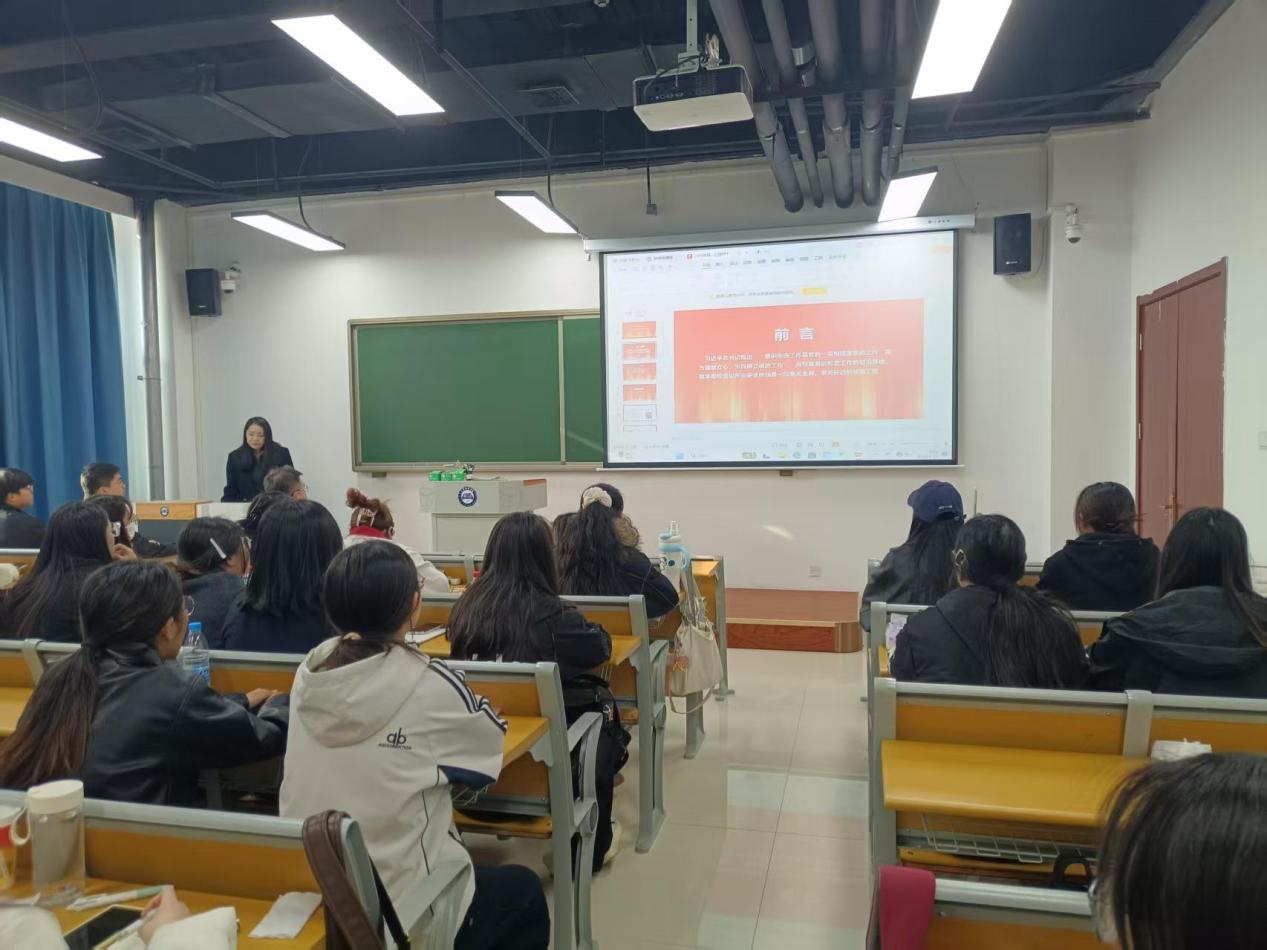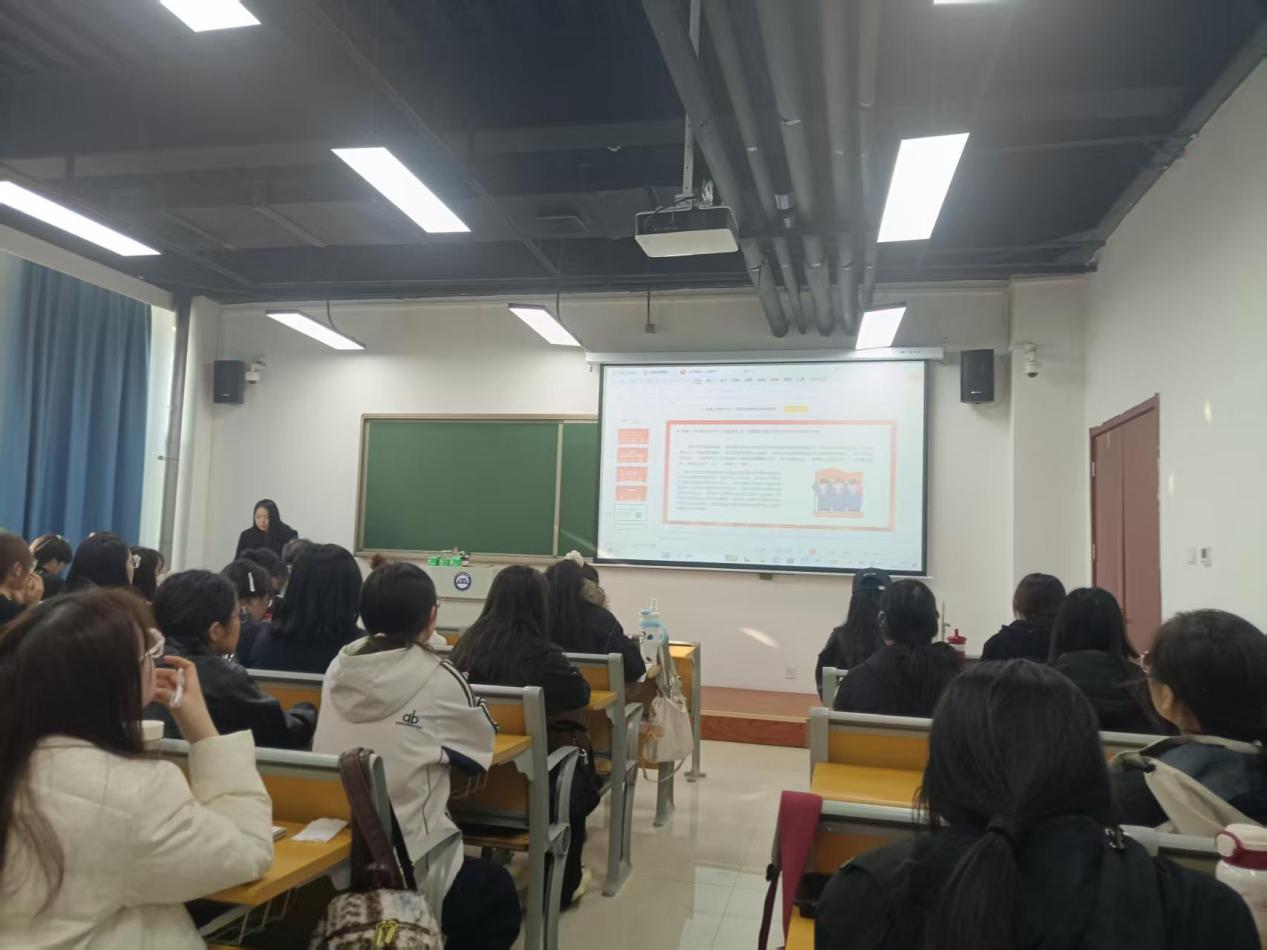 班会中,赵子璇围绕习近平总书记关于意识形态工作的重要论述,从聚焦“首要政治任务”、认识“两个大局”、把握“两个结合”、贯彻“七个着力”这四方面,讲解了意识形态工作的重要意义,结合大学生实际分析了当前意识形态领域的挑战,明确青年学生的责任使命。