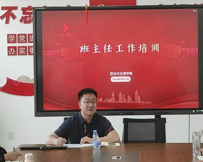 为夯实育人根基、提升管理质效,2026年4月23日,政治与法律学院召开班主任工作专题培训会。学院党总支书记郭志峰、副书记崔彦,全体班主任及辅导员参加会议。